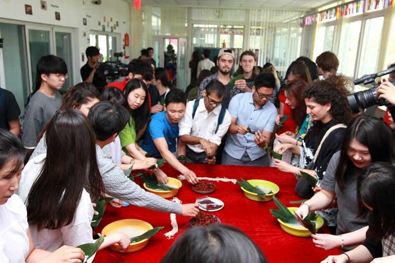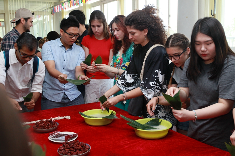 (记者 郝静秋 摄影 任永华)5月26日,南开园弥漫着清新的粽香。来自美国、意大利、西班牙、俄罗斯、芬兰、泰国、土耳其、哈萨克斯坦等20个国家的近百名“洋学生”,聚集在华人直播