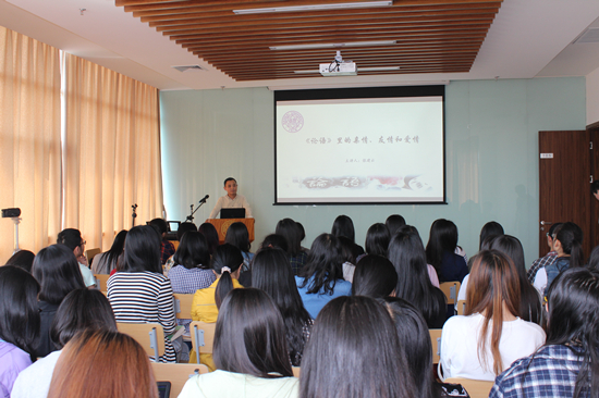 在津南校区举行专题讲座。国学学者、商道传媒董事长,《商道》杂志主编,天津财经大学客座教授,电视栏目《张建云·微国学》主讲人张建云老师来我校为同学们讲解论语里的亲情、友情、爱情。
