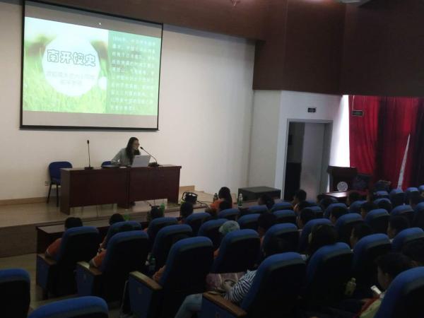 者结合参观者现有的近现代史知识,向六小的师生讲解了我校近百年的发展历史、学术成就、杰出校友、新时代发展等内容,还即兴演唱了南开校歌,受到大家的热