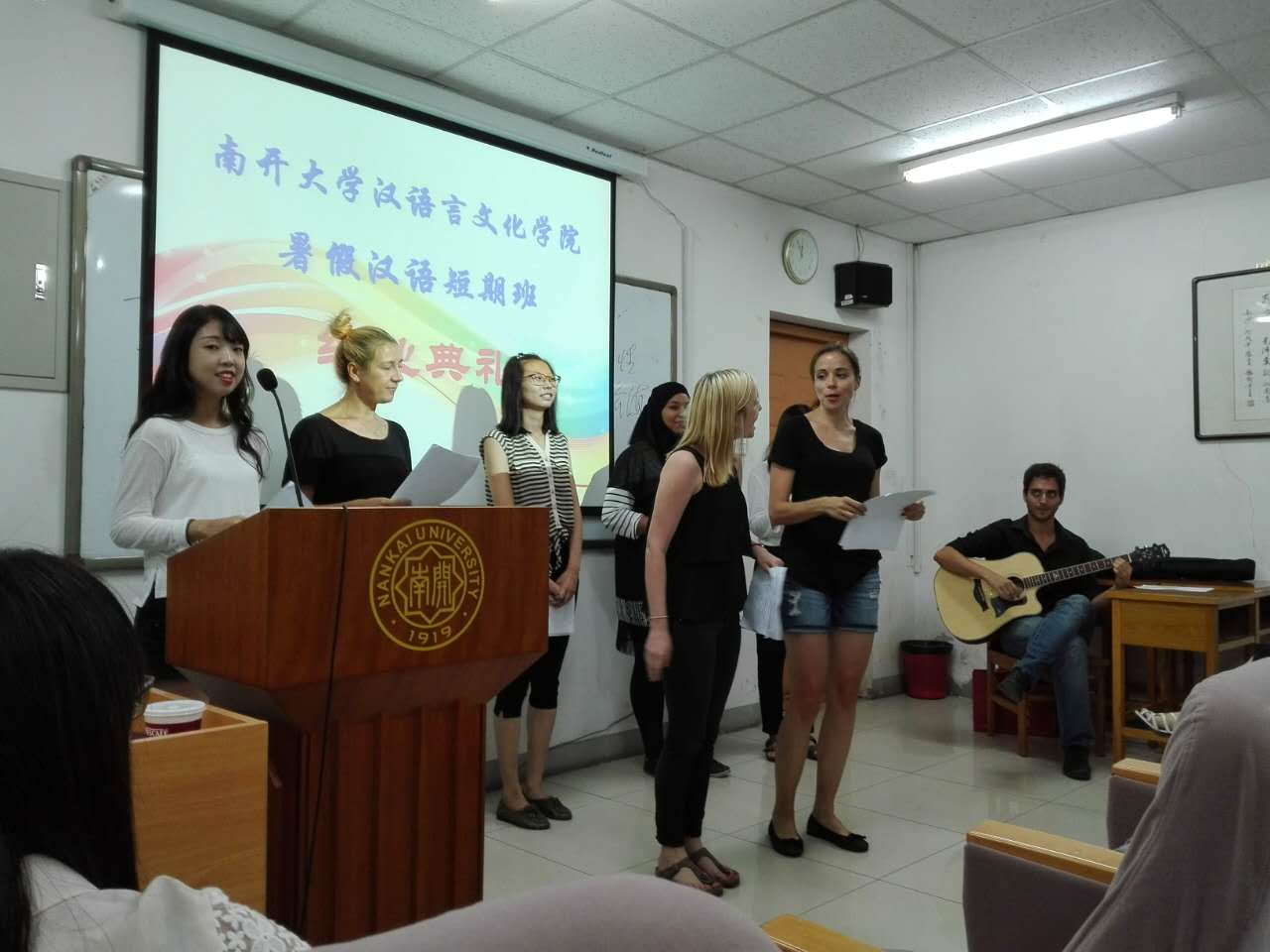 暑期汉语短期班结业典礼举行。来自德国、俄罗斯、日本、韩国等十余个国家的全体短期班留学生参加,华人直播