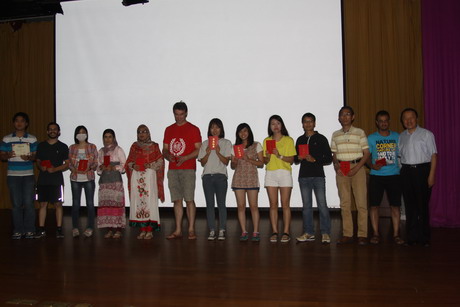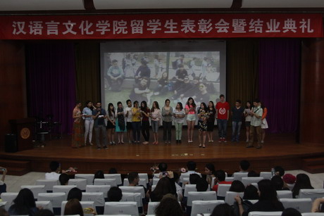(通讯员 马嘉俪 柏采沅) 世界各国,齐聚南开,学习汉语,共享精彩。2015年6月10日下午1时,华人直播 2014-2015学年第二学期留学生表彰会暨结业典礼在主楼小礼堂举行,来自世界50多个国家的316位留学生同学们取得了毕业证书。华人直播 党政领导班子、部分教师代表和全体留学进修生参加典礼,进修部主任邓葵老师主持此次结业典礼。 王立新院长为典礼致辞,他希望大家学好汉语,了解中华文化,争做友好使者,做骄傲南开人,并欢迎留学生常回南开母校。来自越南的刘氏玉英作为学生代表发言,她真诚的感谢学院的老师和同学们有效的教学方式和热情的帮助,使她的汉语在一年内突飞猛进,回到越南之后一定会为中越友好而努力。 接着的表彰仪式上,30位全勤学生、17为优秀学生和3位优秀班长获得了荣誉证书。同时为在本学期留学生汉字听写大赛中获奖的同学颁发证书和奖品,另外,景天婕等四位班导师荣获优秀组织奖。 之后,伴随着富有班级特色,满载珍贵回忆的精彩视频,大家期待已久的结业典礼部分缓缓拉开帷幕。各个班级以汇报演出的形式,向大家展示学习的成果。初级1班同学带来的第一首歌曲合唱《朋友》给大家留下了深刻印象,短短3个月的学习,认识了可以一生一起走的朋友,可以用汉语倾情演唱出同学们自己的心声。初级2班的歌伴鼓表演《我会让你幸福的》是前半场演出的小高潮,叮咚的鼓声,欢快的节奏,动情的演唱,带动着舞台下所有观众一并挥手配合。中级1班的同学们以新颖的方式展现了自己的班级特色,来自五湖四海的留学生纷纷举起自己国家的国旗,绕台环唱,将整场演出的氛围调动起来。高级1班的歌舞《最炫民族风》更是将整场演出推向高潮,班长方尧表示,我们来到中国就要入乡随俗,选择广场舞这种中国独有的健身方式,又唱又跳,让大家开心,我们最高兴。另外,高级2班的节目《呼儿嘿呦》更是别出心裁,毛主席时代歌曲的节奏配合上同学们自己改编的歌词,师生同台合唱,唱high全场。除此之外,中国文化选修课的同学们也为大家展示了一个学期的学习收获。后藤彩和小西缓奈两位同学带来的相声《学四声》精彩不断,赢得了在场老师和同学们的阵阵掌声。最后,中级2班同学带来一曲《See you again》,温暖感人,为整场演出画上了一个圆满的句号。 经过多年探索,华人直播 逐渐形成了留学生进修生教学管理的“南开模式”,即课堂教学与社会实践并重、语言教学与文化体验结合、班导师管理与自我管理结合,受到广大留学生的好评。