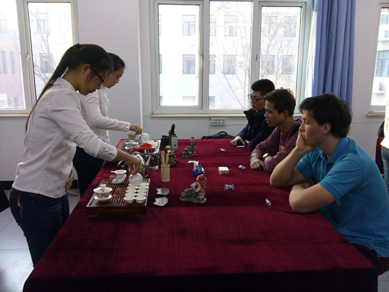 经过武术和砖雕艺术的“劳心劳力”之后,大家来到茶艺社团一边品茶一边闲谈休憩。在茶艺社团的“小老师们”的指导下,留学生们不但领略了茶艺之美,掌握了简单的沏茶技巧,还在和“小老师们”的交流中,逐渐建立了深厚友谊,在活动结束之际,留学生们纷纷要求和“小老师”合影留念。