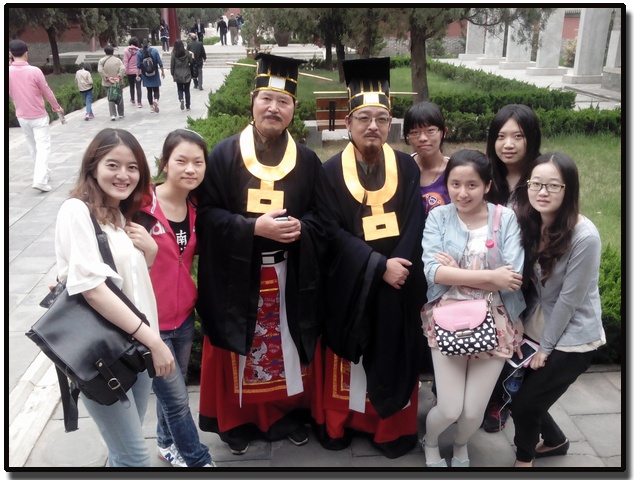 在将近一个小时的祭孔大典中,留学生和中国学生一直在仔细聆听、观看,在真实的文化体验中感受到了中国传统文化的博大精深。中外学生不时进行交流。