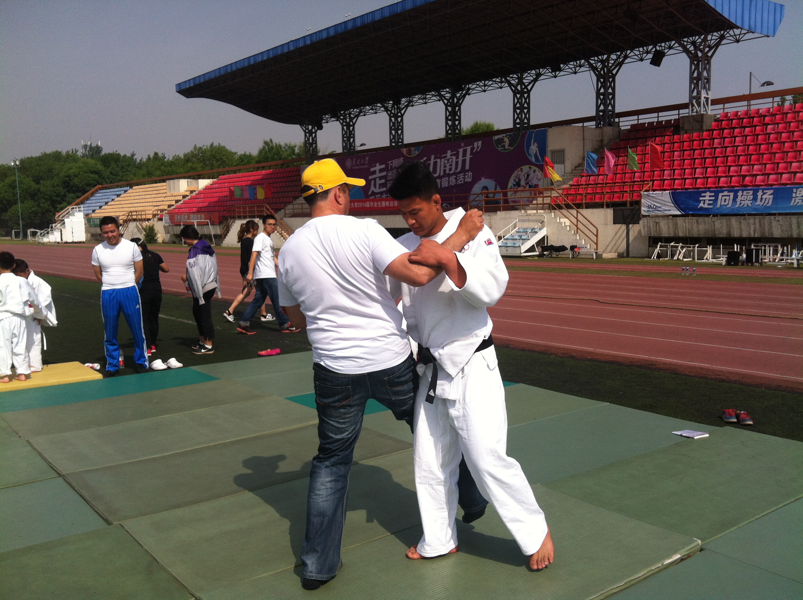在开幕式上,来自我院的8名留学生参加了中外学生拔河友谊赛及其他集体、个人项目,与中国学生同场竞技。来自突尼斯的留学生戴瑞德练习柔道5年,他兴致勃勃地来到柔道体验区,与全国冠军级柔道教练切磋讨教。来自法国的留学生索菲安娜在本学期结束后即将回国,她参加趣味集体项目“格格驾到”后说,“我对中国文化很感兴趣,我希望今后能够再来华人直播