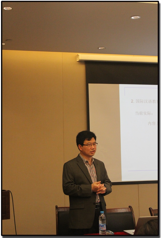 储诚志教授首先从分析汉语国际推广中广泛使用的《中国文化常识》中的“文化”入手,对文化的定义及层次进行了讨论。“文化到底是什么?”储教授用实例指出:所有人类的文明创造与规约性行为和思想方式都是文化,文化无所不是、无处不在。以《中国文化常识》为代表的教材所介绍的中国文化,其内容也几乎无所不包,而且基本上是古代的、传统的,都是美好的,其中的有些内容本族人也不清楚。但是,国际汉语教育中的文化教学,要重点考虑“语言文化”,也就是体现在语言的单位、范畴、关系以及语言交际惯式中的文化特质,兼顾特定学生的特别兴趣。“语言文化”内容的选则要扣紧语言学习的基本阶程,按照基本生存、自由生活、大众文化、社会政治与专业百科的基本递进层级来分段进行;,从当代出发,由“当前”及于“从前”。同时,文化教学既不要总是扬善遮丑,也不要专事显恶揭丑,要以培养学生跨文化交际的实用能力这一总目标,把学生看作有思考能力的观察者,平和大气地介绍渗透在百姓生活和交际当中不同侧面的文化。美好的方面要介绍,既使不那么美好但却渗透在中国人思想和生活交际中的那些文化也要适当介绍,否则就会造成文化盲区和文化误判,影响学生在中文语境中交际能力的发展。在对“语言文化”的解读中,储教授对比了中美两国人在使用“sorry”“thank you”时的区别;不同年代人们偶遇时打招呼的差异等。