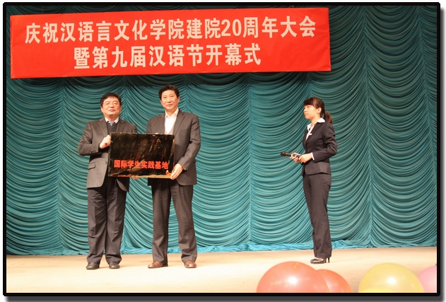 中国文化体验中心国际学生实践基地”的意向。签约仪式结束后,七所实践基地的负责人作为特邀嘉宾,出席了我院建院二十周年庆祝大会,院长王立新为实践基地授牌。