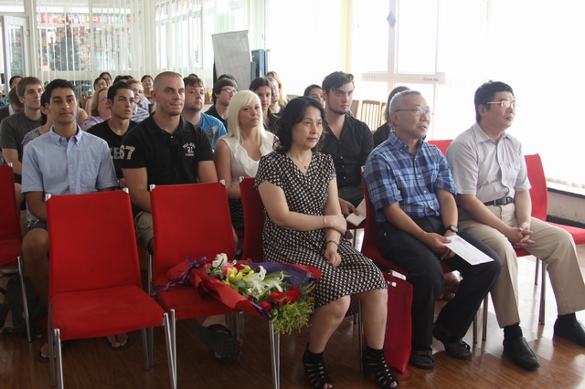 的学业表示祝贺,他希望同学们在回国后还能继续学习汉语,有机会还能再来中国,再来南开。随后吴伏生教授发表讲话,表示期待着第二个十年。王立新院长和刘春兰副院长为同学们颁发了结业证书和成绩单。