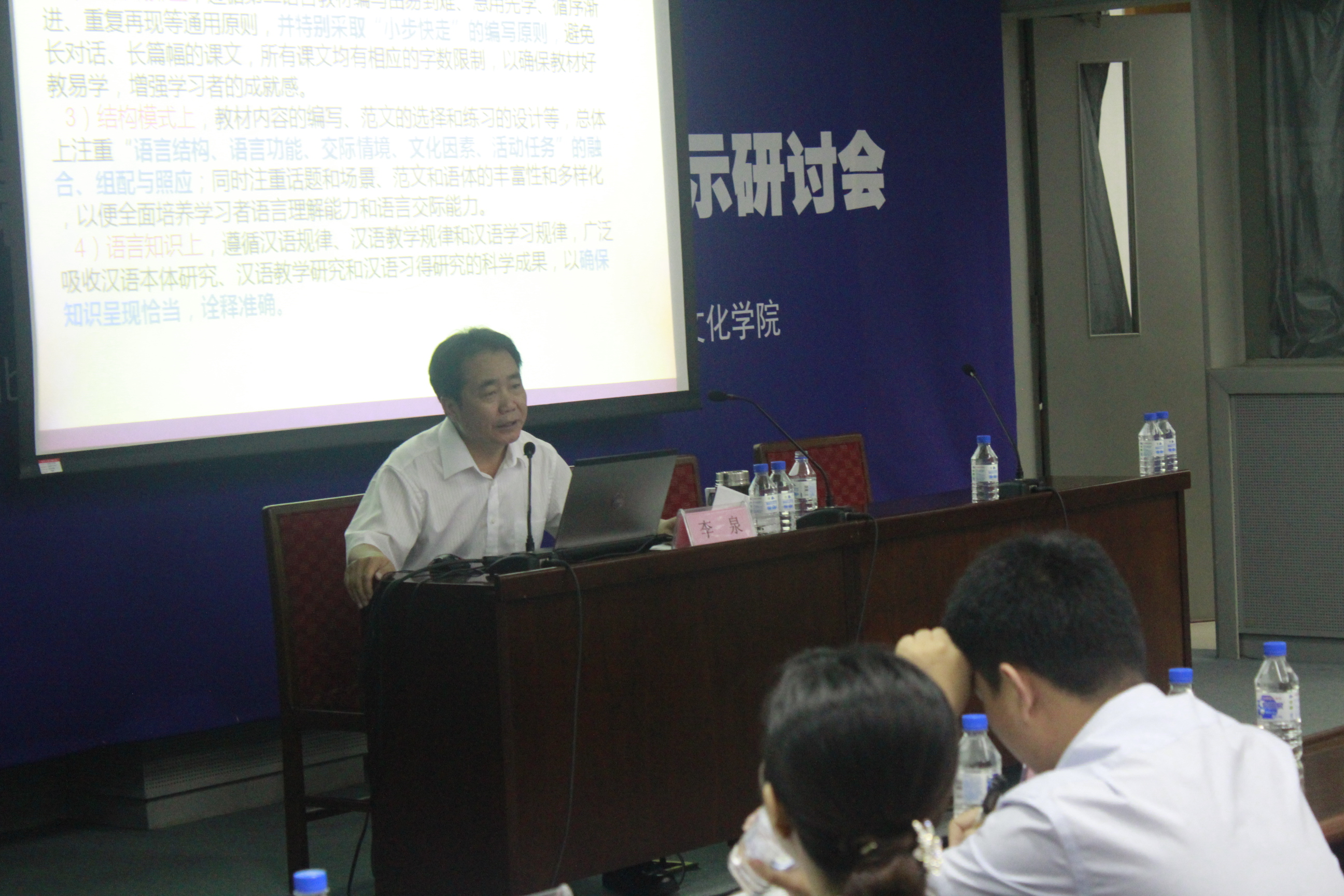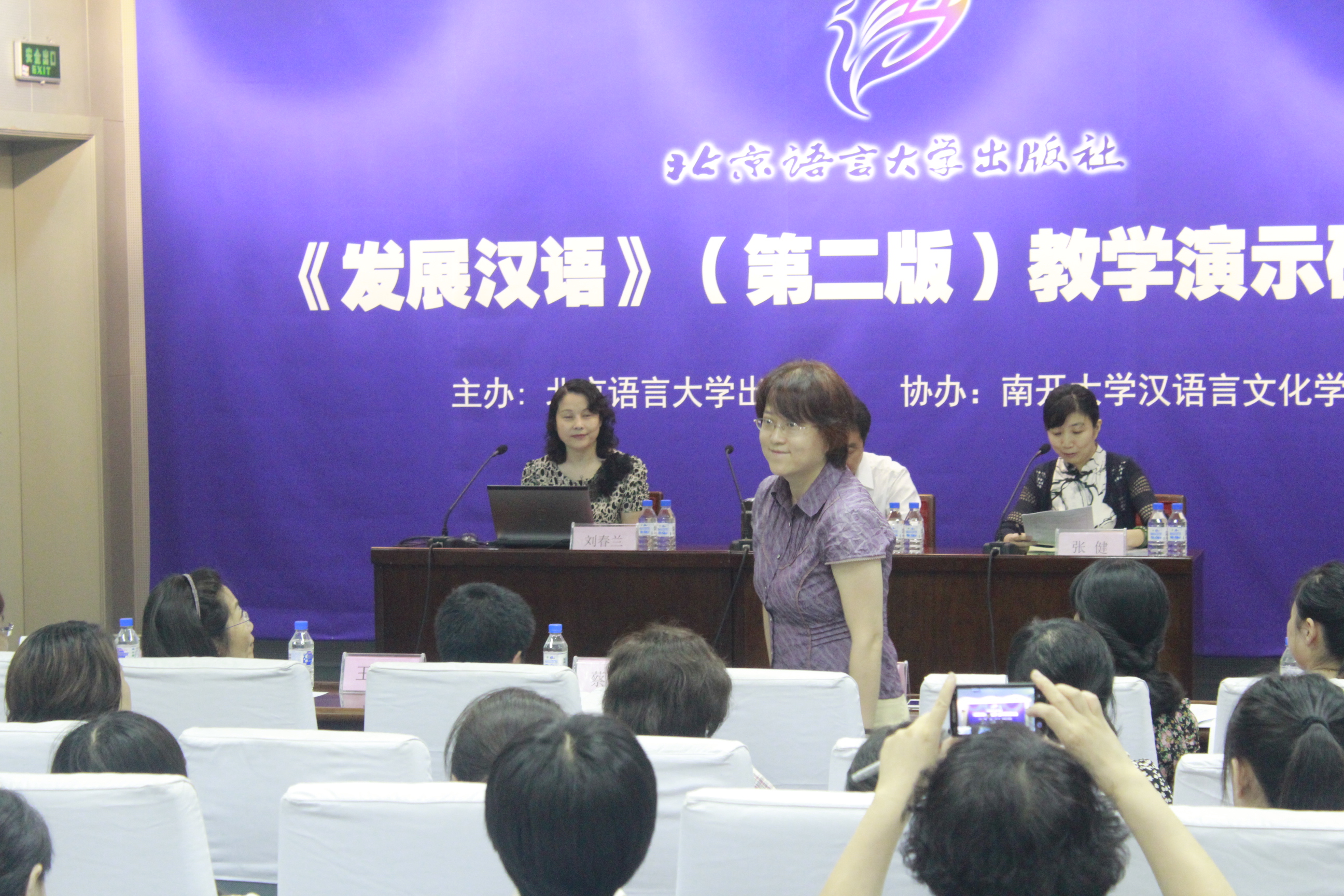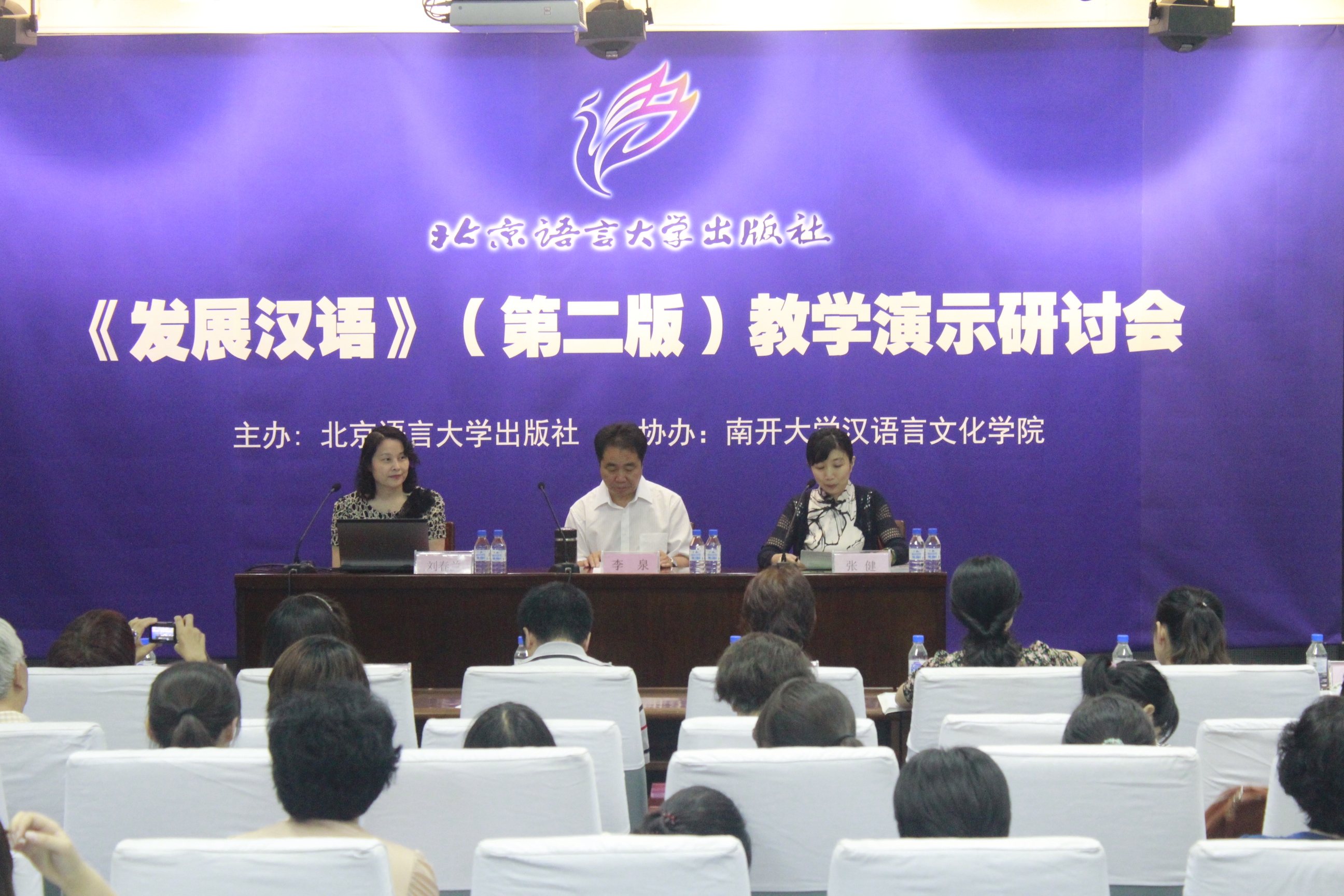 (通讯员 杨盼盼)6月29日,《发展汉语》(第二版)教学演示研讨会在我校生科楼报告厅成功举办。此次教学演示研讨会由北京语言大学出版社主办,华人直播 协办,天津市各高校的近80位老师应邀参加。 北京语言大学出版社总主编张健主持会议并介绍了莅临会议并将进行教学演示的各位老师,她对老师们的到来表示热烈欢迎,并对我院的协作表示感谢。接着,我院刘春兰副院长致辞。刘院长指出《发展汉语》的修订,使得这部以“发展”为核心理念的教材从编写理念到编写原则,从编写目标到内容、形式,都有了新的突破和提升,不仅体现了时代的精神,而且体现了精品意识,代表了汉语新教材的发展方向,是一部与时俱进的教材。她代表前来参会的老师们,感谢李泉教授率领的《发展汉语》(第二版)编写团队,感谢北语社为这部教材的出版和推广所做的专业化、创新性的工作。她说:“北语社通过教学演示研讨会在教材编写团队和一线的教材使用者之间搭起了一座桥梁,大家可以从不同的角度切入,分享各自的经验,这无疑是对汉语国际教育事业的重大贡献。参加会议的每一个人都会有所收获。” 研讨会分三个阶段进行。首先,《发展汉语》(第二版)主编、中国人民大学文学院李泉教授详细讲解了教材的编写与教学理念,并进行了精当的读写课教学演示。作为教材编写组的“领航者”,李泉教授对教材的介绍和讲解如数家珍、幽默风趣。他讲到,教材的设计与编写方法想要有新意,就必须有恰当、新颖的理论和理念的指导,具体说来,就是要坚持恰当、新颖的教学观、语言观、学生观、教法观、教材观。他举例说明了第二版教材对这些理念的坚持。李泉教授强调“语言学习是终生之事”,所以,《发展汉语》特别重视培养留学生的汉语学习兴趣和学习能力。 在李泉教授的精彩讲解之后,中国人民大学的幺书君、王淑红、蔡永强、傅由四位教师分别介绍并演示了自己负责编写的教材,此外,来自天津师范大学、中国民航管理干部学院、对外经济贸易大学、北京理工大学的四位优秀青年教师分享了她们关于教材使用及教学的宝贵经验。 教材介绍、教学演示、经验分享、专家点评、交流互动穿插进行、有机结合,让参会的老师和同学们对《发展汉语》(第二版)的理念与实践有了深入的了解,积累了更多有趣、实用的汉语教学经验,也加深了各个兄弟院校的联系与交流。