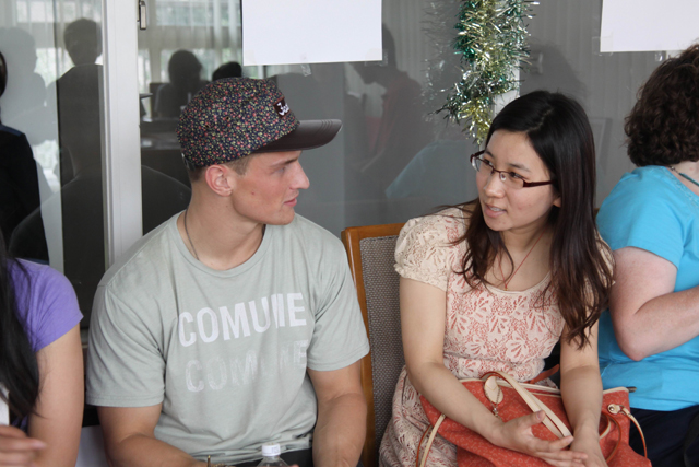 (通讯员 南栢芝)24日下午,美国犹他大学语言伙伴交流会在汉院南楼成功举行。交流项目美方代表与负责该短期班课程教学的汉语教师都表达了自己对两国学生友好交流、互相促进的美好愿望。参加这次语言伙伴见面会的中国学生不仅有汉院学生,更是包括了数学学院、外国语学院的大批学生,表现出中国青年一代对传播汉语以及传承中国文化的积极态度,亦彰显了中国人的热情好客。而美国学生也表现出他们对汉语以及中国传统文化的兴趣,希望与更多的中国学生成为朋友。两国学生都积极地寻找自己的语言伙伴,进行融洽地交流,整个教室都被一种温馨的气息包围着。 本次见面会本该在一个半小时内结束,但是大家丝毫没有感到时间的流逝,始终都在与自己的语言伙伴交流,无论是中国学生还是美国学生,都表示这是一次很有意义的见面会。很多学生在见面会后互留了联系方式,以便在接下来的一个月里开展学习。