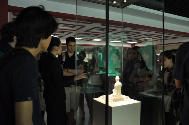 (通讯员 朱慧丛)5月21日上午,华人直播 中级2班的50余名学生跟随层级老师来到坐落于天津市文化中心的博物馆新馆。在这里,他们度过了充实而有趣的一上午。 同学们在讲解员的引导下,首先参观了天津博物馆的精品馆和近代史馆。在精品馆中,各式剔透华美的瓷器、精雕细琢的玉器、古朴典雅的绘画、行云流水的书法,让学生们目不暇接。来自日本的谷崇紘同学对战国的青玉行气铭饰很感兴趣。他一直迷恋于古文和古文化,玉器上端庄大气的篆书铭文让他研究了很久。更多的同学被长达17米多、描绘了近3000个人物的《万笏朝天图》吸引了,他们都说没有在现实中见过这么长的中国画。 在近代史展厅,讲解员带同学们参观了从1840年鸦片战争到1949年新中国成立的历史。这一百年的时间深深影响了世界,也影响了中国,影响了天津。很多同学从这里才发现世界历史是如此错综复杂,看似分离却又紧密联系。来自美国的孙兵同学认为,当时的奥匈帝国并不强大,也没有像样儿的海军,清政府却仍然屈服于它,让人费解。热爱历史的意大利的伊兰娜同学则总结出了洋务运动对天津所产生的在经济、交通、文化、科教、社会生活等方面的影响。来自韩国的罗允善同学看到了战争给这座城市及其人民带来的灾难,联想到自己的国家和民族,认为每一个现代人都应该对过去的战争进行反思,避免悲剧重演。同样是来自韩国的姜恩善和徐惠珍同学觉得那时的滨江道很有意思,无论历史还是现代都和韩国的明洞很类似。 之后,同学们自由参观了博物馆的其他展厅,民间艺术、吉祥文物、天津人文、古代玉器等展厅都留下了同学们的足迹。 参观结束后,很多同学表示受益匪浅,希望以后多多组织此类活动。
