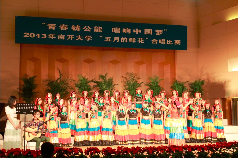 灵动的旋律,婉转的歌声,富有特色的民族裙装,优美的舞蹈以及现场伴奏,此次五月鲜花比赛,同学们积极准备,热情参与。辛苦的训练换来了丰厚的成果。面对20多个参赛学院的激烈竞争,我们院虽然只有45名女生参赛,但是我们凭借自身的辛苦努力,踏实训练, 既不惧“大院”的霸气,亦不输“小院”的威风,最终以实际行动为学院争得了荣誉,向全校师生展示了汉院学子的靓丽风采。
