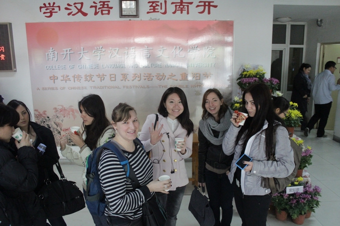 的中外同学们共同体验了重阳之乐,并在体验中感受到中国传统文化和南开公能素质教育对中外学生的洗礼。