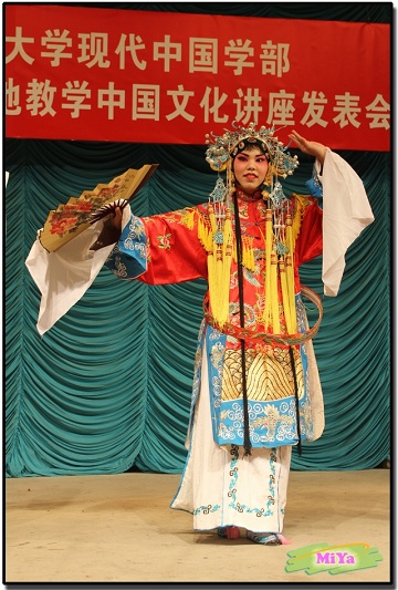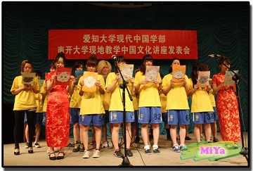日本留学生真野纱也加、小林优子、八木恒德、石黑龙介以较为流利的中文主持揭开大会的序幕。节目精彩纷呈,京剧、相声、诗朗诵和中国传统乐器演奏等不一而足。在场观众伴着《高山流水》、《百鸟朝凤》的演奏声慢慢沉醉,体会到了中华名曲的美,更为演奏者的技艺折服。京剧《小快枪》、《穆桂英挂帅》、《小放牛》、《红娘》、《打城隍》和《贵妃醉酒》的接连上场让观众们叹为观止,尤其是最后的京剧联唱更让大家大呼过瘾。诗朗诵《木梳》、《水调歌头》展示出日本留学生对中华文化的了解与热爱,是现地教学成果的成功展示。由爱大E班表演的歌曲《喜羊羊》让我们看到了日本学生的活力和朝气,体现出了中日文化的交流无论从传统艺术还是当今热门的动画文化方面都十分深入。舞蹈《床前明月光》和《竹林深处》的表演不仅展示出日本留学生的美妙舞姿,更体现出中华文化的博大精深与源远流长。三句半《我在中国》掀起了演出的一个高潮,贴近生活的取材、演员们丰富的面部表情和幽默搞笑的语言都使在场师生忍俊不禁,其中不仅包括日本留学生在南开生活的趣事、还有中国的饮食、娱乐等方面内容。相声《五官争功》则向我们充分展示出日本留学生的认真与努力。