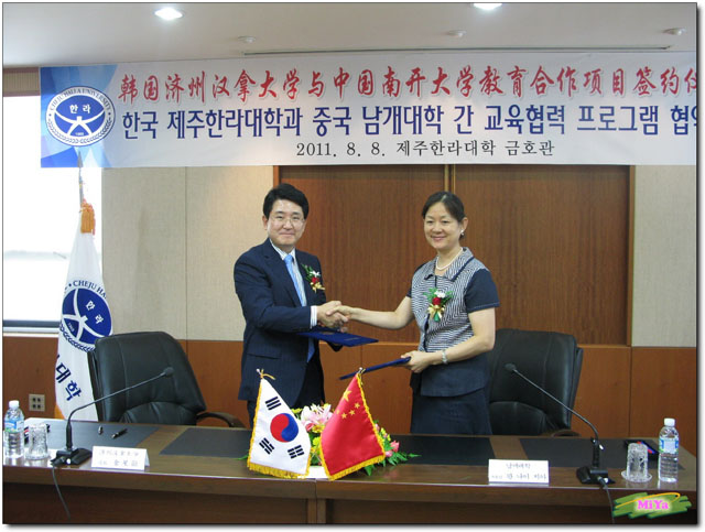 王立新院长及国际交流处和汉院相关工作人员。 济州汉拿大学金星勋校长、孔子学院外方院长申宜暻和中方院长陆平舟教授对南开代表团的来访表示了热情地欢迎。 双方领导签署了《中国华人直播