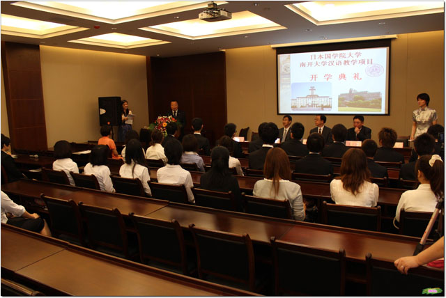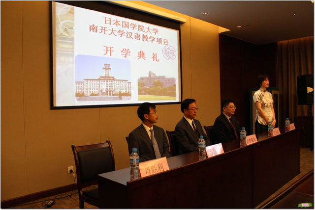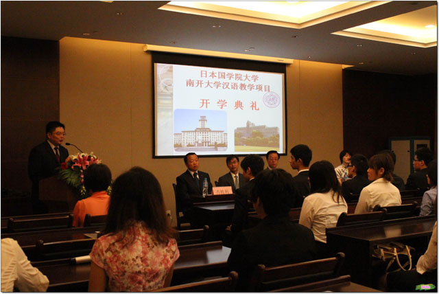 赤井校长首先代表国学院大学作了讲话。赤井校长介绍说,此次项目由以前只面向中国文学课的学生扩展到全校学生。这些学生已经在日本学习了一年半的汉语,但是在听说方面还存在不足。赤井校长希望国学院的同学们努力学习汉语,积极了解中国文化,不负众望,为两校交流做出贡献。