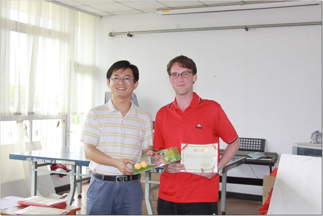 颁奖仪式上,接过证书和奖品的朝鲜的小伙子崔明国十分高兴。他兴奋地说:“乒乓球是中国的国球,我很爱打乒乓球,不仅能强身健体,而且可以从中体会中国的体育文化。谢谢汉院组织这届大赛,我非常高兴能在比赛中获奖!”