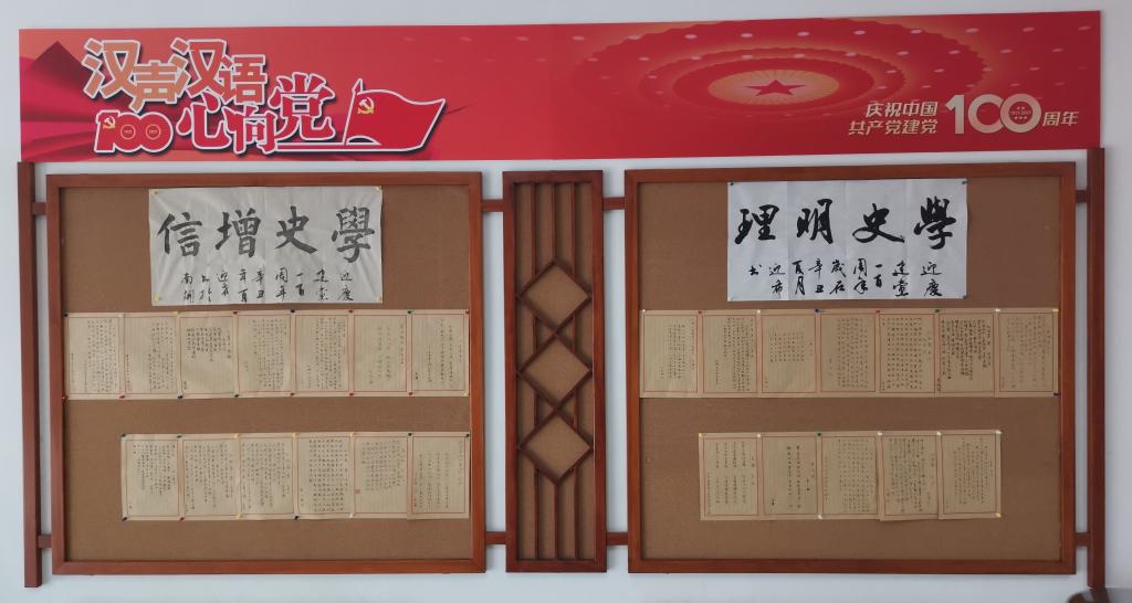 国际教育学院、汉语言文化学庆祝建党100周年书法展示活动,弘扬红色文化精神,传承中国优秀传统文化,展示我院全体职工的爱党之心、崇敬之情。