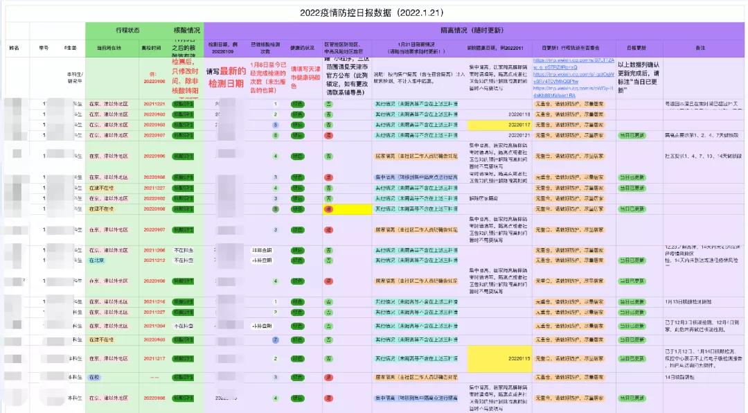 与此同时,手机里接踵而来的是一个个通知,一张张表格,一通通电话。每天连夜排查在籍学生当前状态,分不同类别学生进行各种信息统计,让她忘记了“隔离”的无聊和苦闷。