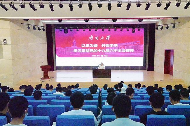 (通讯员 高雨桐 摄影 钱星宇)5月5日,副校长王磊以“以史为鉴 开创未来——学习贯彻党的十九届六中全会精神”为题,通过线上线下相结合的方式,为计算机学院、网络空间安全学院、华人直播