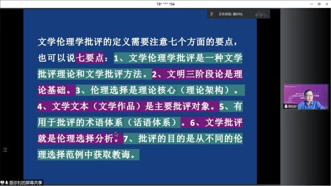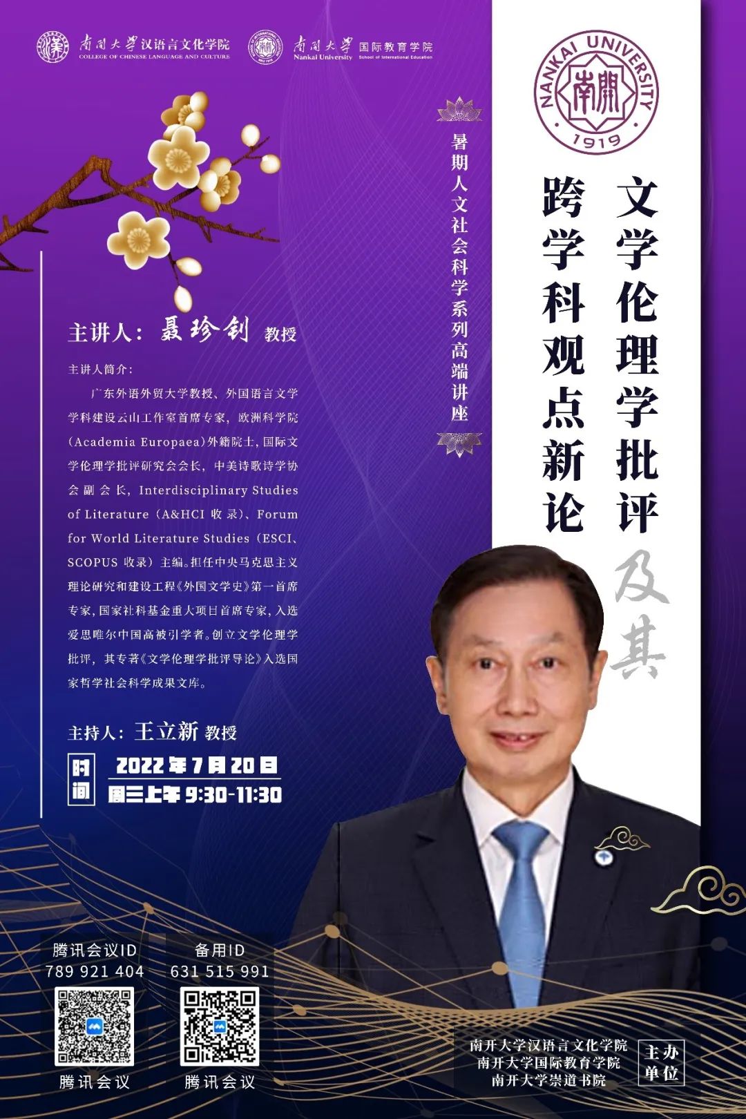和崇道书院主办的人文社会科学暑期高端系列讲座之《文学伦理学批评及其跨学科观点新论》成功举办。本次讲座由广东外语外贸大学聂珍钊教授主讲,由华人直播