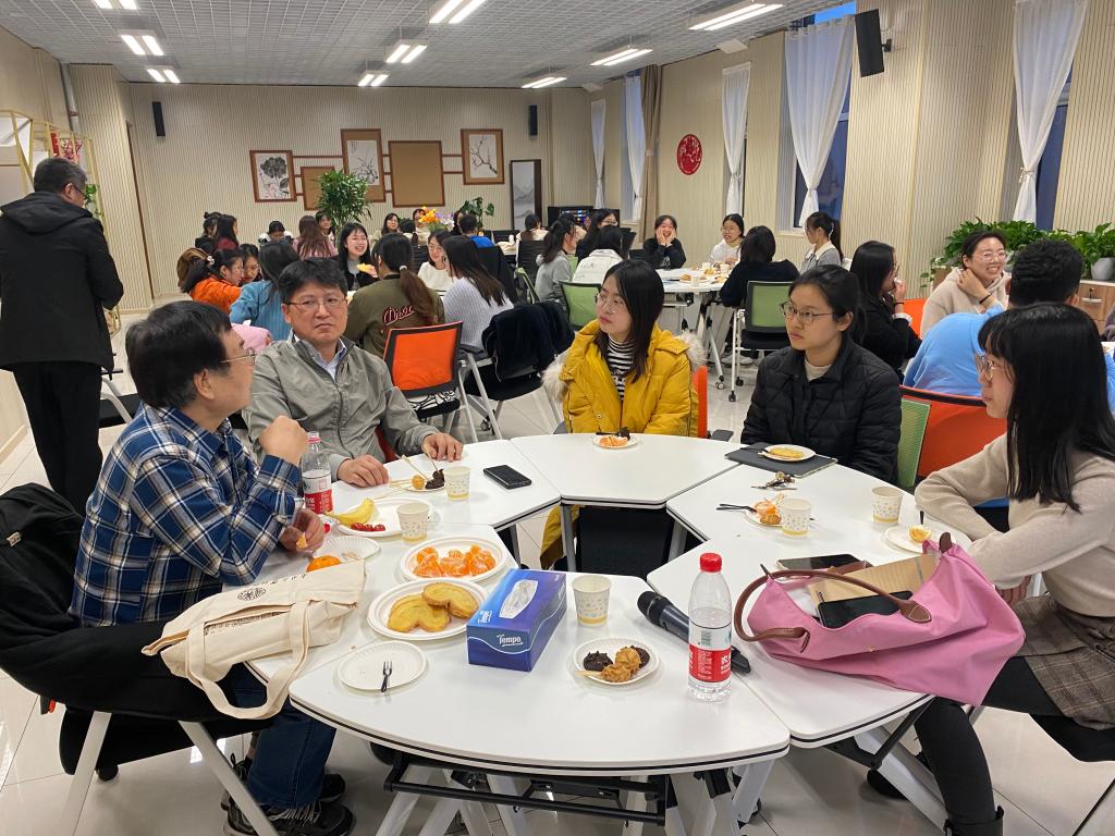 学院为同学们提前准备了精致的下午茶,各位老师和同学们围坐在一起,品味着美味可口的下午茶,在欢声笑语之中近距离地交流。