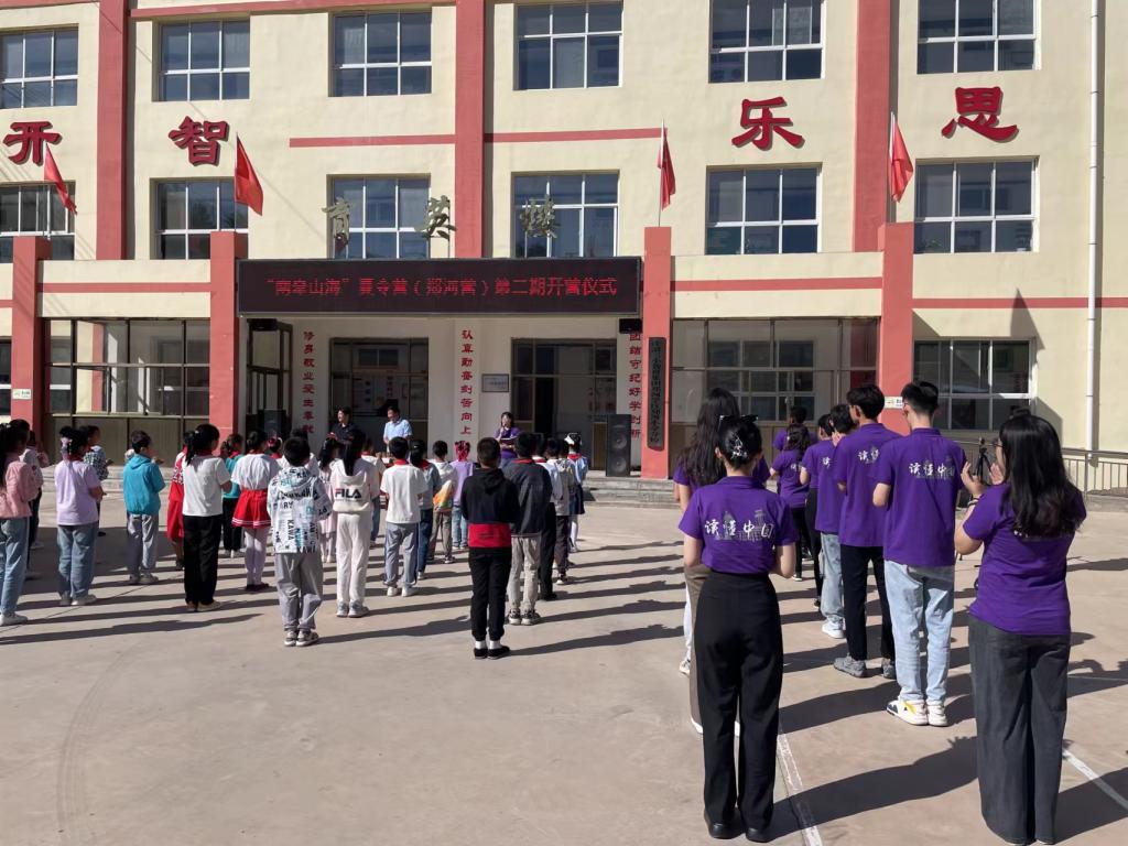 开营仪式上,郑河小学校长张树名首先对实践队的到来表示欢迎,他寄语夏令营营员借此机会充实暑假生活、学习更丰富的知识、开拓眼界,在今后的学习生活中更加勤奋认真,与实践队队员一起在夏令营中锻炼、提升自己。随后,带队教师邢北辰介绍本期“南牵山海”夏令营的基本情况,介绍了本期夏令营的课程设计,例如科普小课堂、文化比较课堂、素质拓展课堂等等,通过各种类型、形式的课程让营员融入其中、有所收获,并宣布夏令营正式开营。