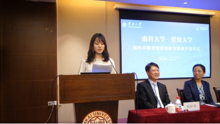 向参加现地项目的日本师生表示热烈欢迎,回顾了现地项目历史及两校近年的发展变化。陈凌懿认为,该项目架起了一座中日语言、文化交流的桥梁,谱写了中日高等教育合作的佳话,是中日教育交流的范例。希望在现地项目的基础上,两校能够进一步加强合作,携手培养更多中日友好交流的文化使者。