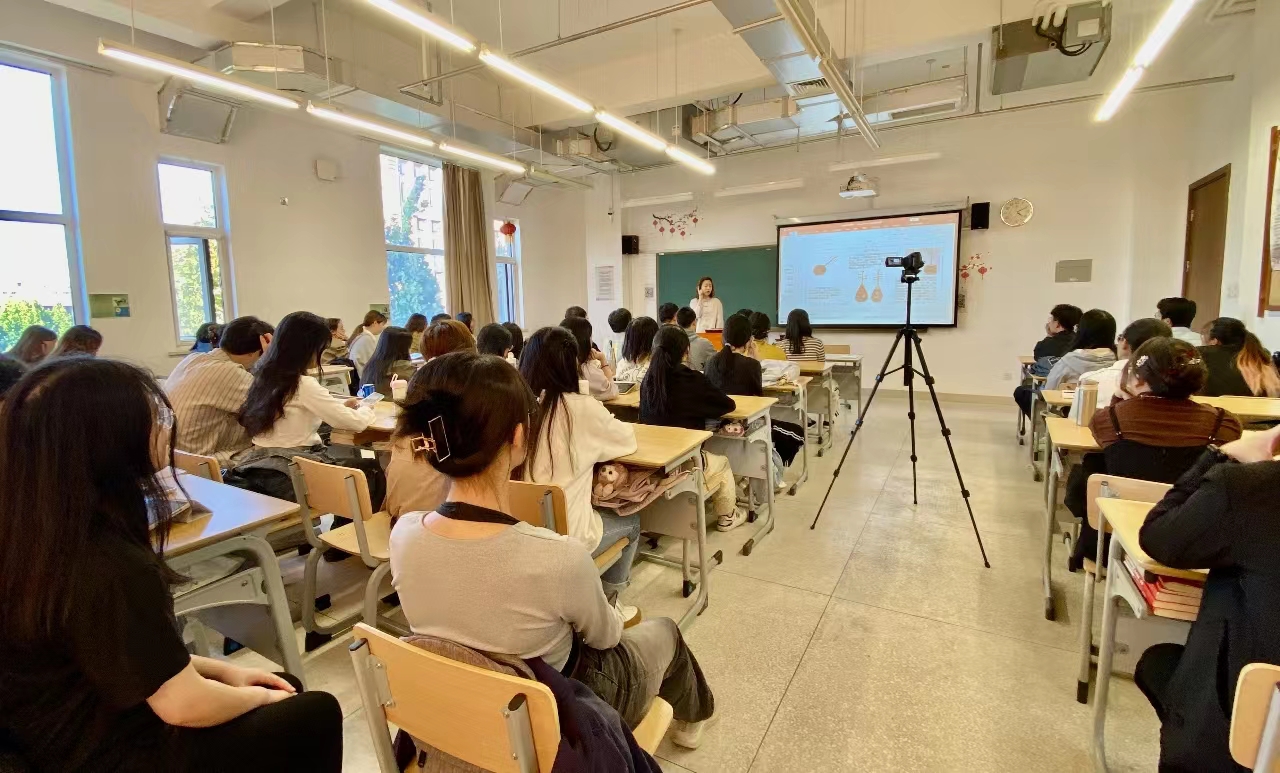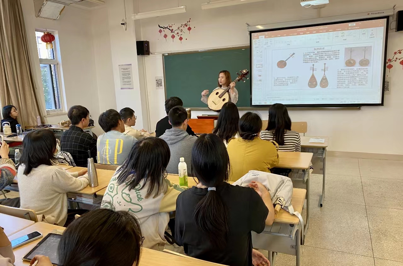 官微首先从阮的发展历史入手,详细介绍了阮的历史起源、种类、音乐特点以及代表曲目。官微讲到,阮对于大众而言相对冷门,但其在当今的民族乐队中扮演着重要角色。她结合具体曲目,为同学们展现了阮独特的音域和丰富的表现力,同时带领大家鉴赏了阮咸乐器的代表性曲目《茉莉花》。