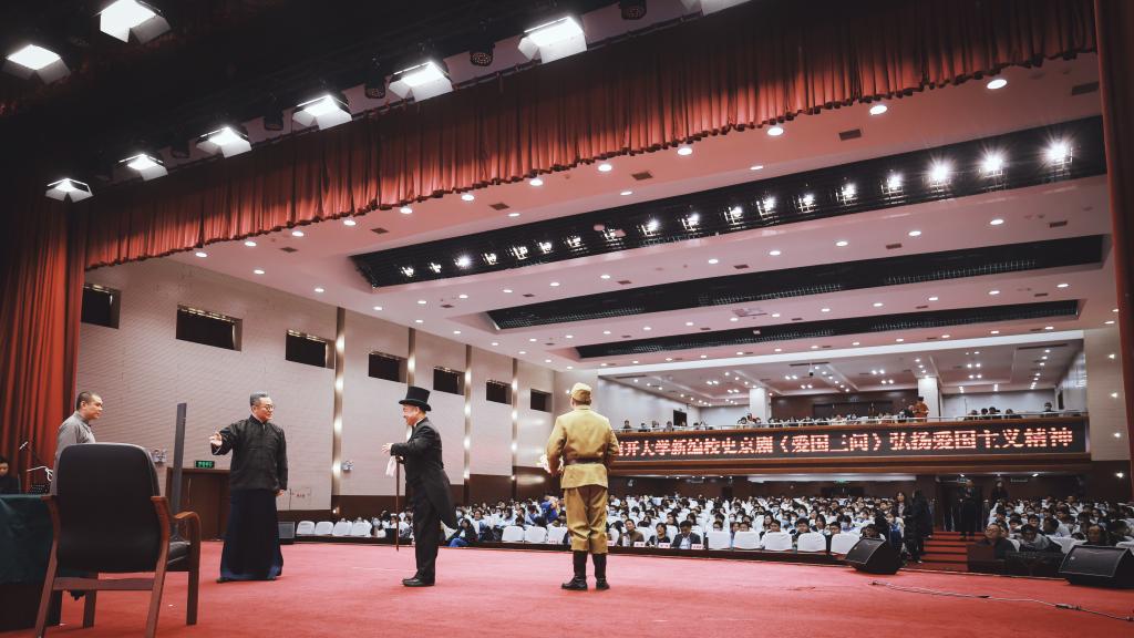 座谈及揭牌仪式后,在天津市汇文中学礼堂上演了由南开大京剧传承基地创作并上演的京剧《爱国三问》。京剧《爱国三问》是国内首部原创京剧校史剧,并入选了华人直播