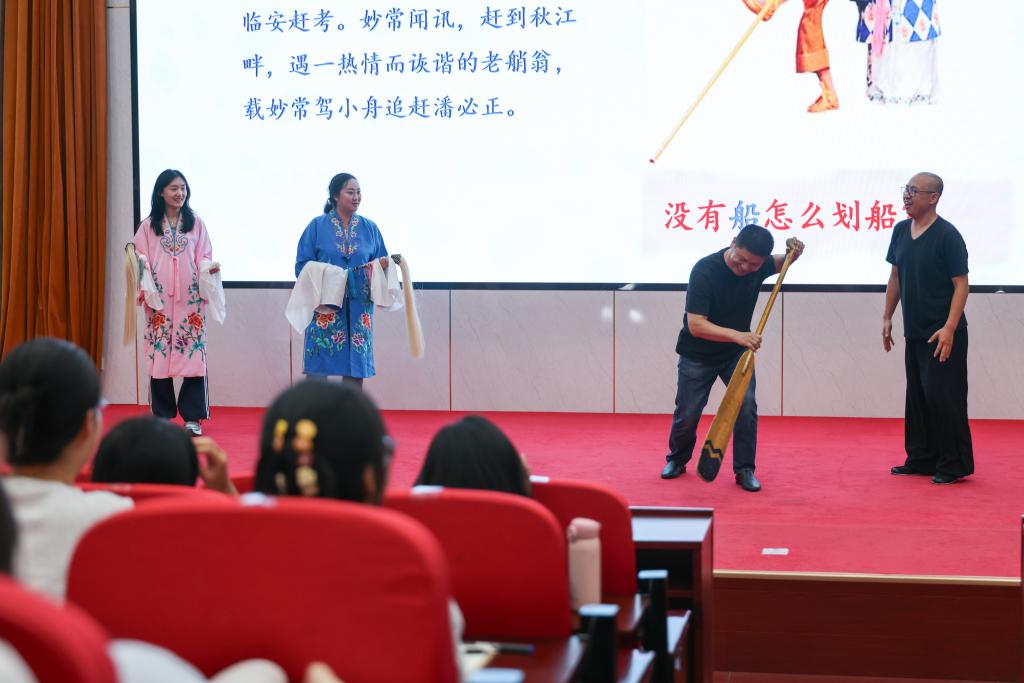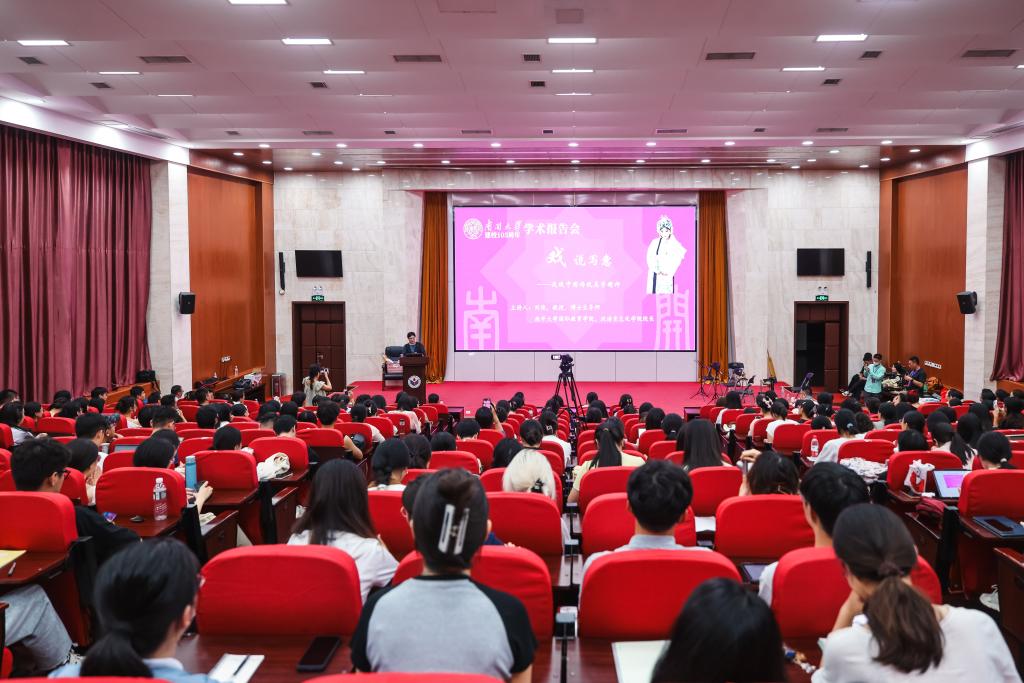 为充分表现传统美学中的写意手法,在理论阐释的基础上,老师们还亲身示范,展示了《拾玉镯》《秋江》《黑旋风李逵》等剧目片段,以及“趟马”等表演程式,赢得台下阵阵掌声。本次报告会还邀请台下的师生上台互动,将研究赏鉴与实践紧密结合,让师生们感受京剧艺术形式的特点与规律,在沉浸式的体验和角色扮演中去领悟真善美相统一的人文与美学精神。